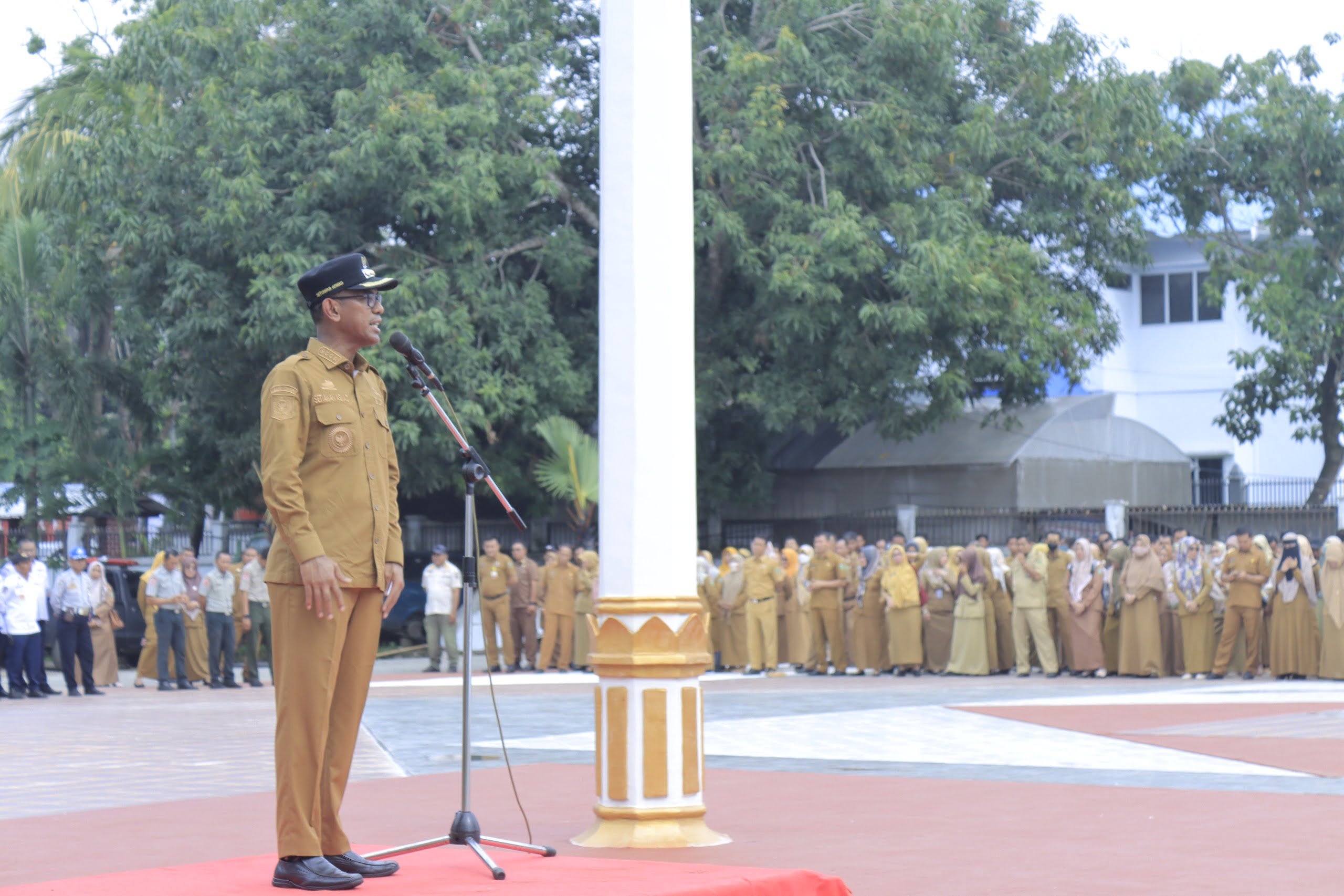 Makassar- PJ Bupati Takalar, Dr Setiawan Aswad, memimpin Apel Gabungan Seluruh OPD Lingkup Kabupaten Takalar di Lapangan Upacara Kantor Bupati Takalar Dalam kesempatan tersebut, Dr. Setiawan mengajak seluruh pegawai untuk menyemarakkan Gerakan Shalat berjamaah di Masjid, baca Al-Qur’an, Sholat Dhuha, dan Gerakan Sedekah Subuh, Senin (10/06/24).